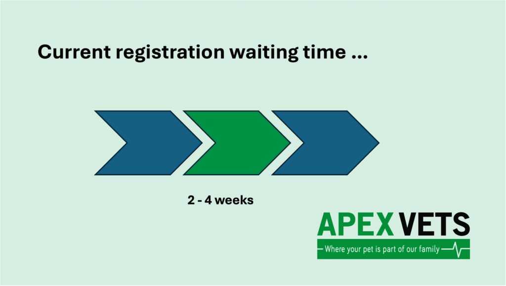Good news! Joining our waiting list does not affect any registration with your current vet practice. Once you reach the top of our waiting list, we will contact you to confirm that you still wish to register with us and welcome you to our practice.